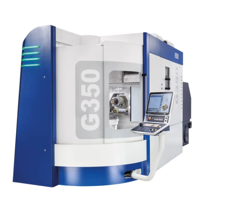 Introducing the new Grob G350 5-Axis Universal Machining Center which has a working travel X of 23.62", Y of 33.66" and Z of 29.53". It's maximum speeds are 70 m/min in X, 45 m/min in Y and 90 m/min in Z axis respectively. This machine provides positioning accuracy of 0.006 in X-/Y'/Z-axis and it comes with a table load of 338/400 with/without pallet and a total weight of 15,300/17,500 without/with pallet changer. The tool length for single disk-type tool magazine is 365 HSK-A63 and for double disk-type tool magazine it is 365/180/550 HSK-A63.