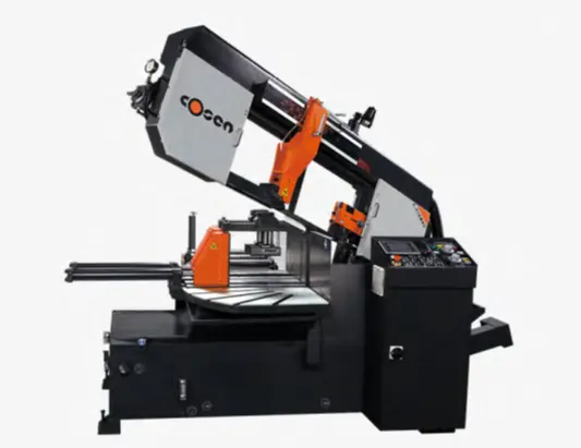 Introducing the brand new Cosen C-510MNC Fully Automatic Horizontal Scissor Style Mitering Band Saw. Manufactured by COSEN, this miter saw features a 20" Rect-Cap width, 13" Rect-Cap height and operates at a 5hp power. Equipped for efficiency, it provides ease of use with a blade clip device, hydraulic powered chip auger, full stroke vises, and double retracting vises. The Band Saw also includes a built-in work light, an additional flushing hose for cleaning, a bi-metal saw blade, and a toolbox with tools, leveling pads, an additional wire brush, and the operation & part's manual. Upgrade your workshop with this exceptional new equipment.